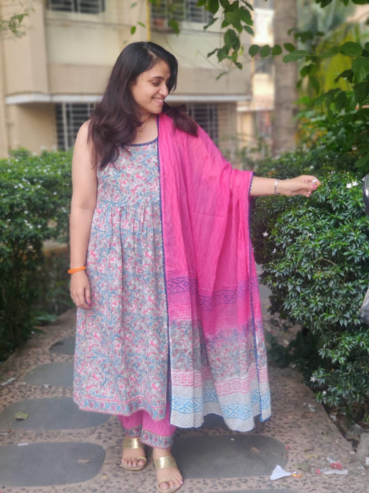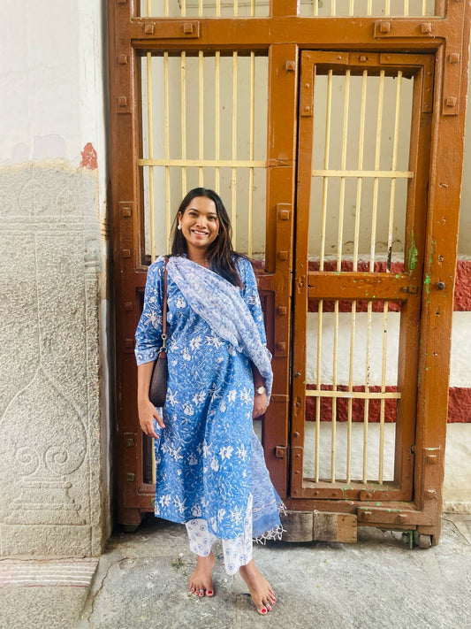 The skilled artisans of Jaipur, India have hand printed this fabric with natural colors. Our every design is hand crafted with utmost dedication and care