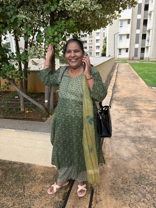 The skilled artisans of Jaipur, India have hand printed this fabric with natural colors. Our every design is hand crafted with utmost dedication and care